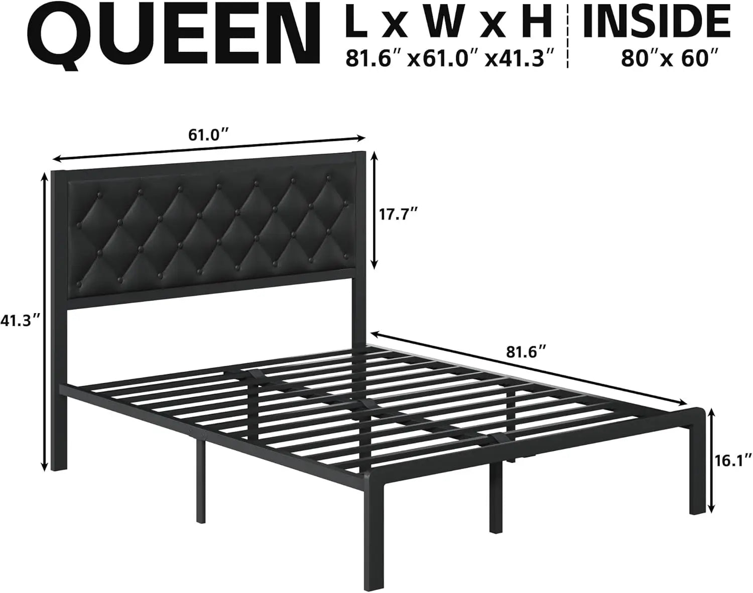 XMSJ PU Leather Upholstered Bed Frame With Headboard