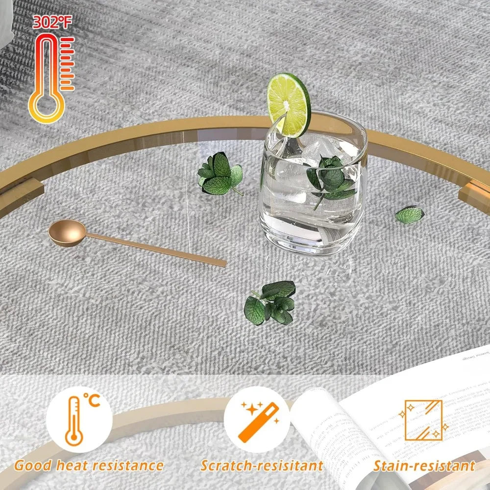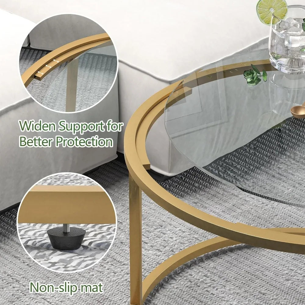 Elevate your living space with this round glass coffee table, featuring a clear glass top and a durable metal frame for a sleek, modern focal point in any room.