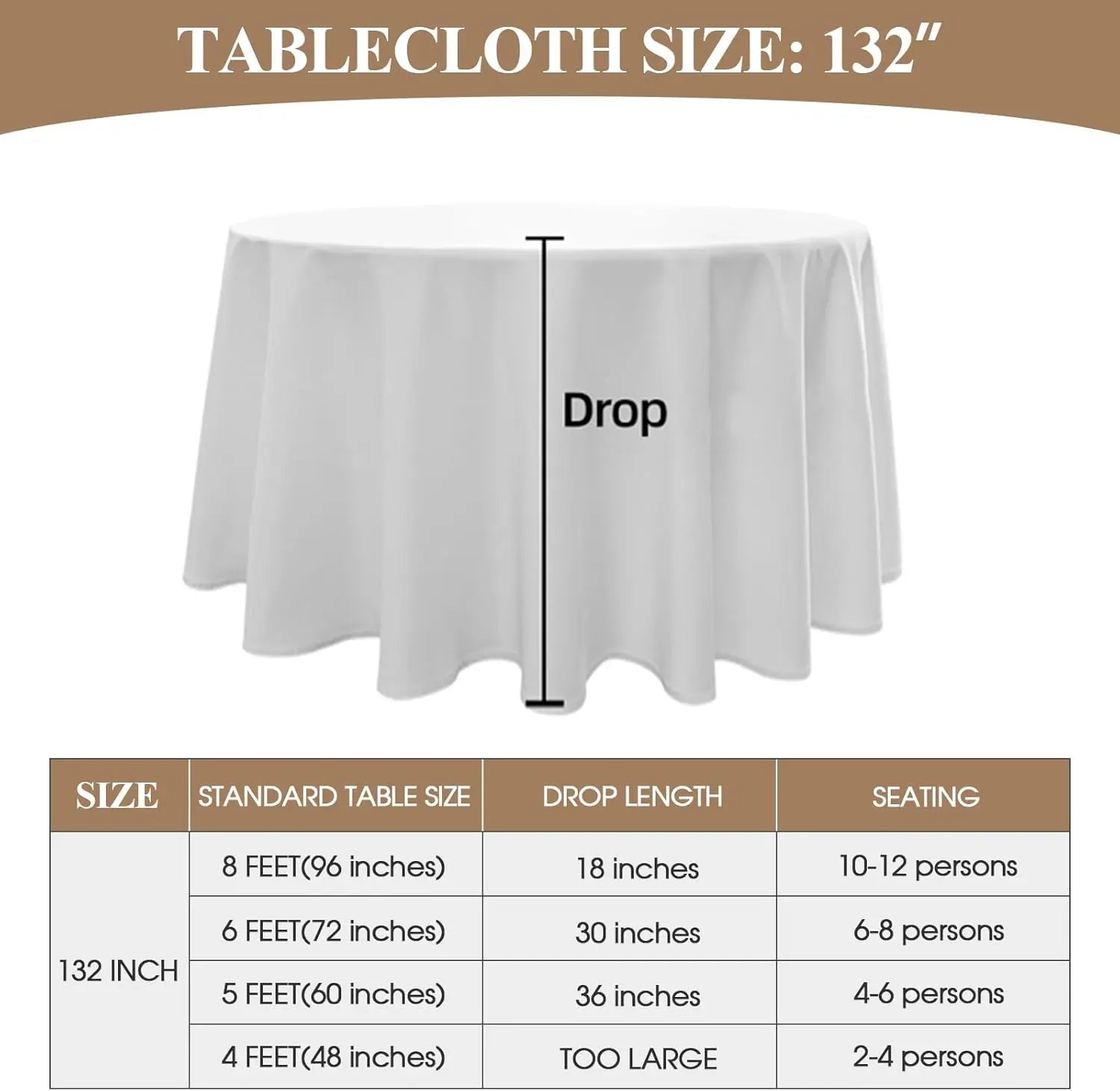 - Multiple size options: Choose from 90, 108, 120, or 132 inches to fit different round tables; measure yours and refer to the size chart for the best fit.