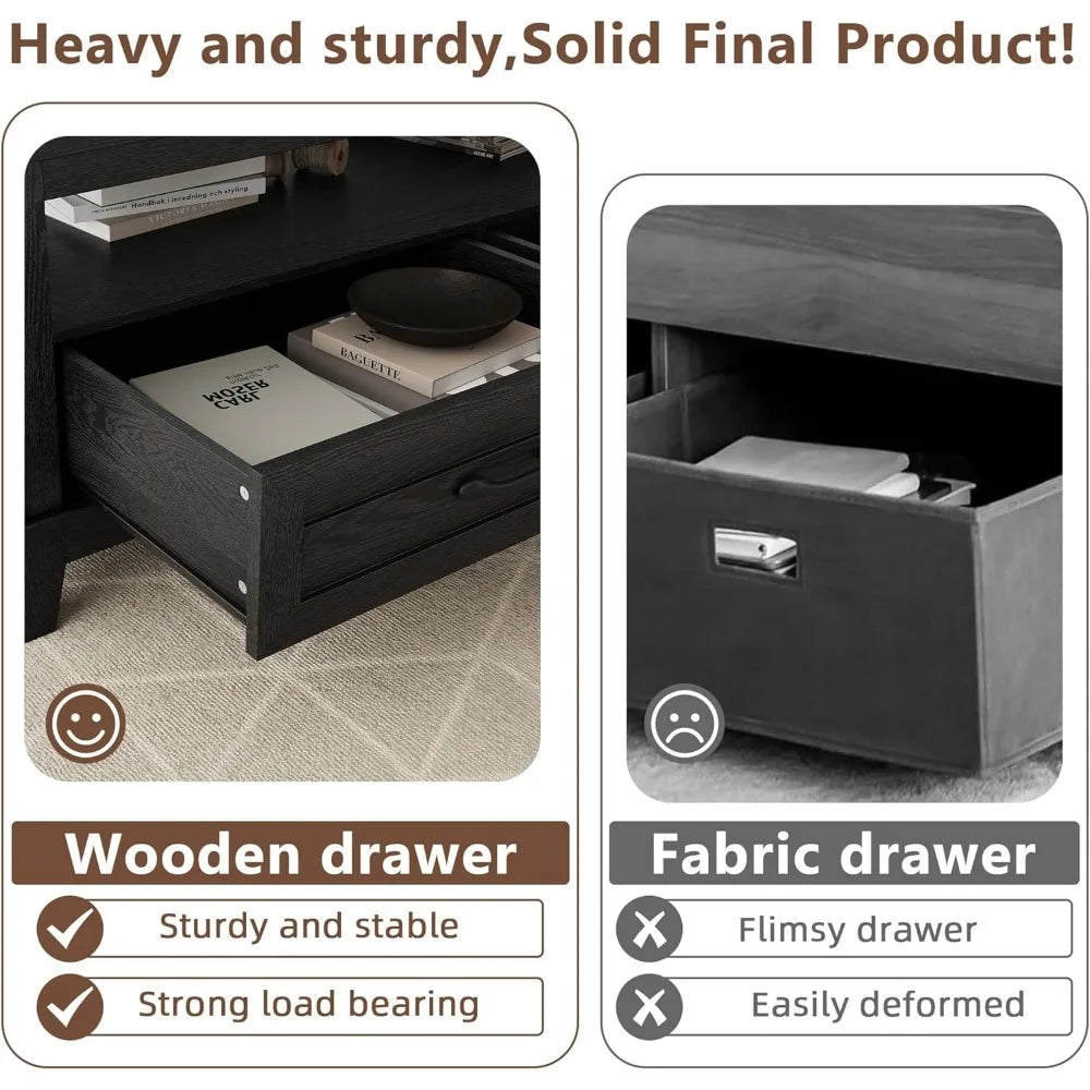 - Generous top and storage: 47.24" wide, 23.62" deep, 19" high; two drawers and a large open shelf keep daily essentials organized while the flat surface hosts coffee, plants, or snacks.