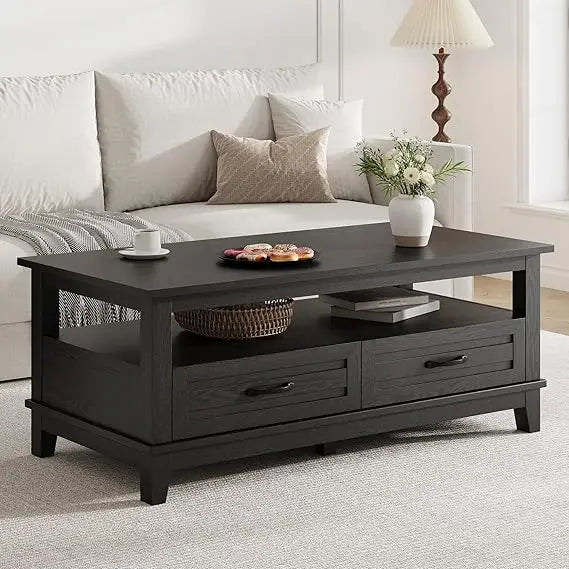 Rustic Farmhouse Coffee Table With Drawers And Open Shelf