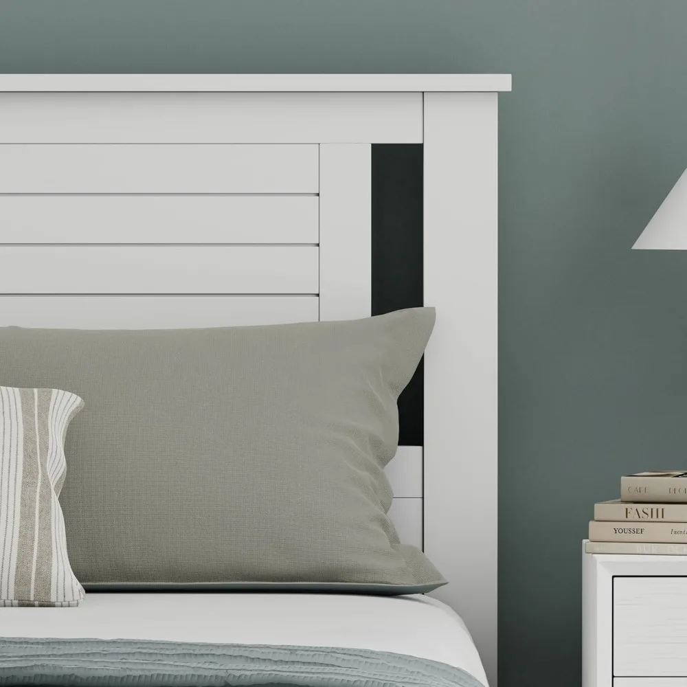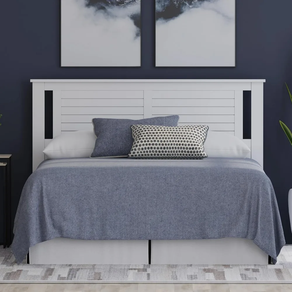 Serene Poplar Wood Queen Headboard, Modern Farmhouse Panel with Horizontal Scoring, Queen Size Headboard in White, Casual Coasta