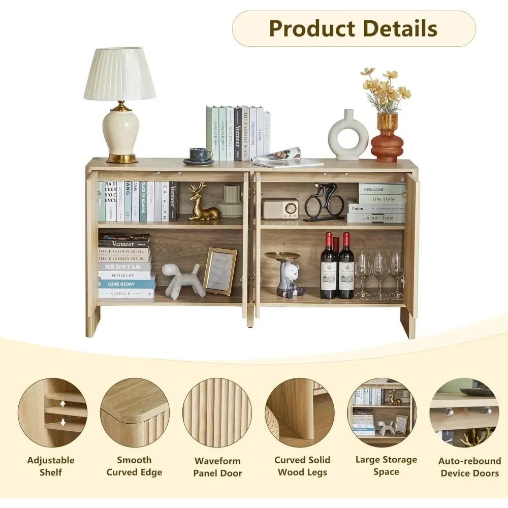 Sideboard Buffets Cabinet, Modern Accent Storage Cabinet with 4 Fluted Doors and Adjustable Shelves