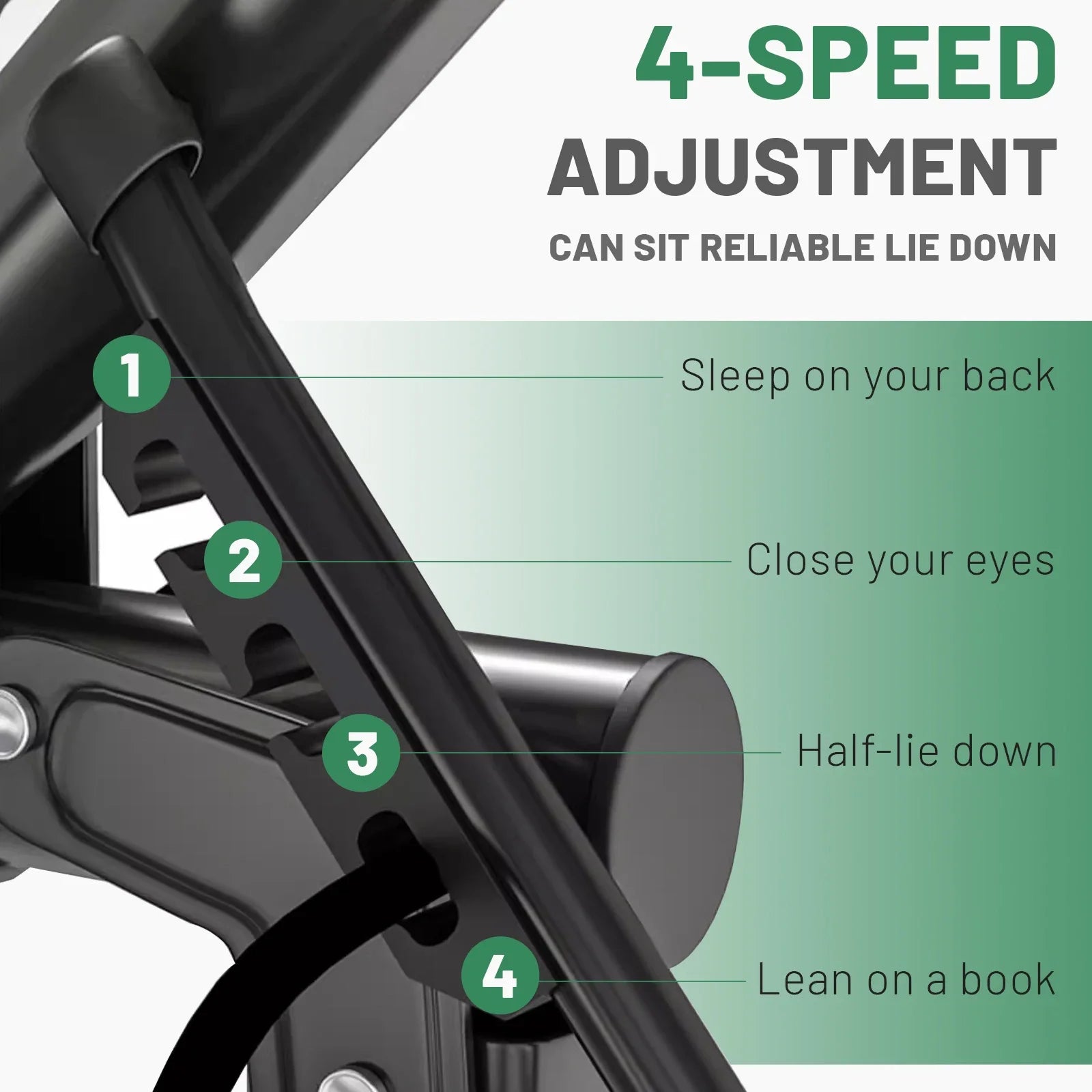 - Four-gear adjustable backrest lets you customize the angle for lounging, reading, or resting, so you can find your ideal position in seconds.