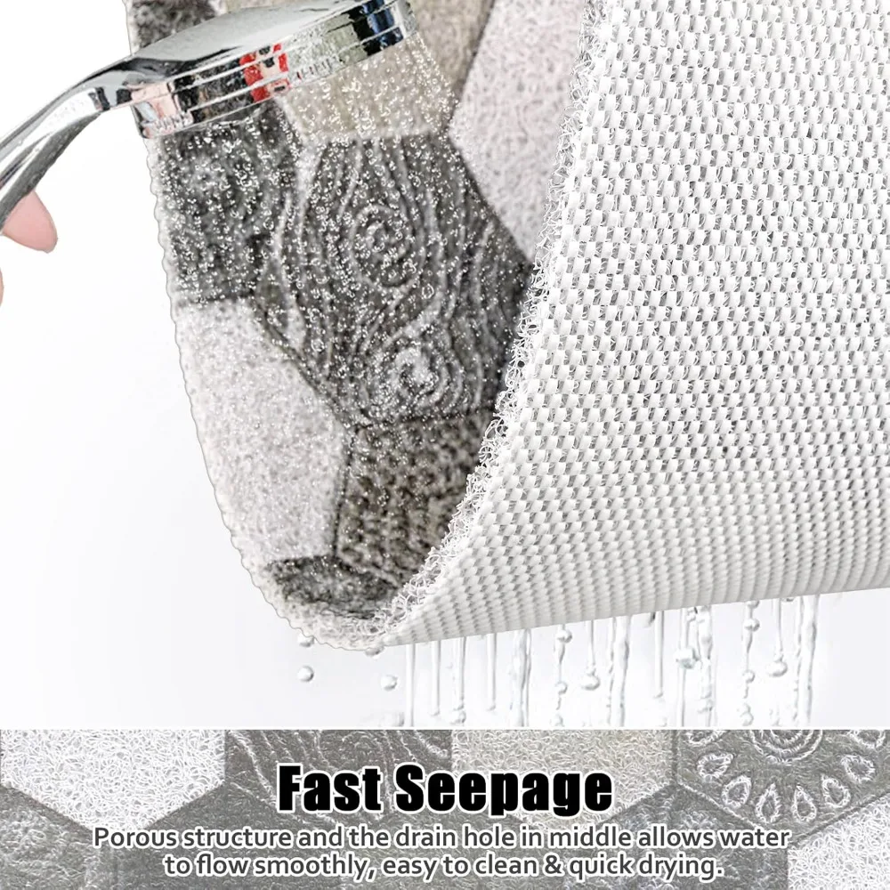 - Non Slip & Durable: Compared with traditional shower mats with difficult cleaning suction cups, our bath mat can achieve good anti-slip effect without adsorbing cups. The bathroom mat has a durable non-slip plaid backing at the bottom, which not only provides friction with the floor, but also accelerates the flow of water.