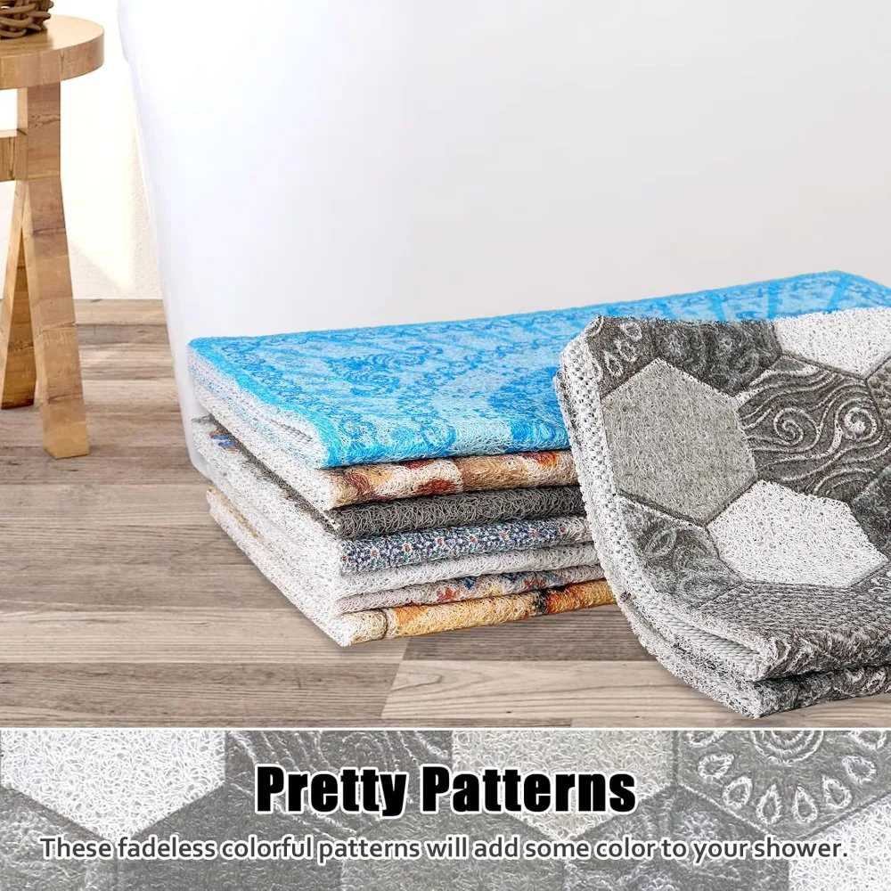 - Comfort and Soft: The soft loofah-like textured surface and ideal thickness allows our shower mat to provide you with comfortable support, keeping you away from the hardness and coldness of regular bathroom mats and providing a nice massage experience for your feet.