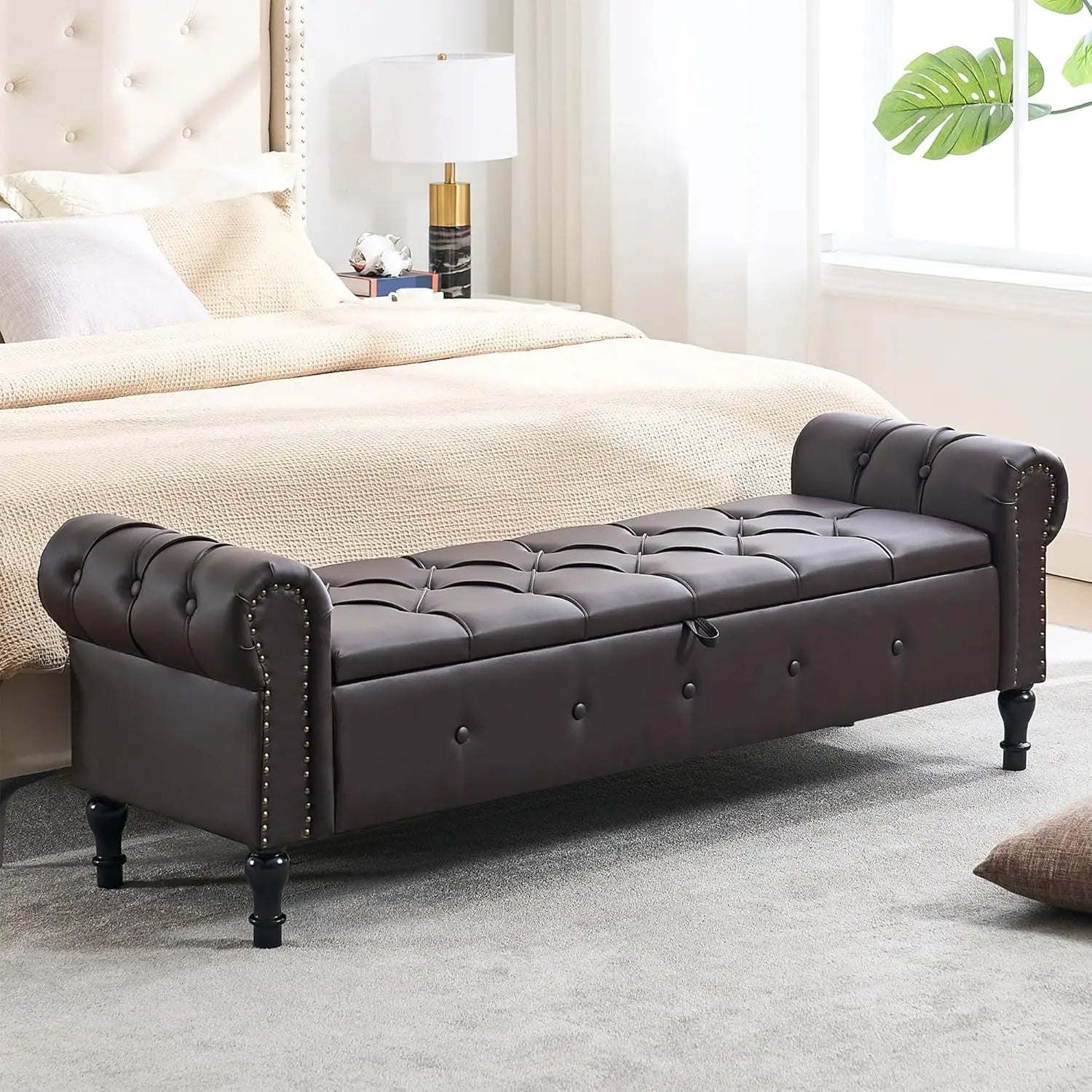 Storage Bench for Bedroom Faux Leather End of Bed Bench