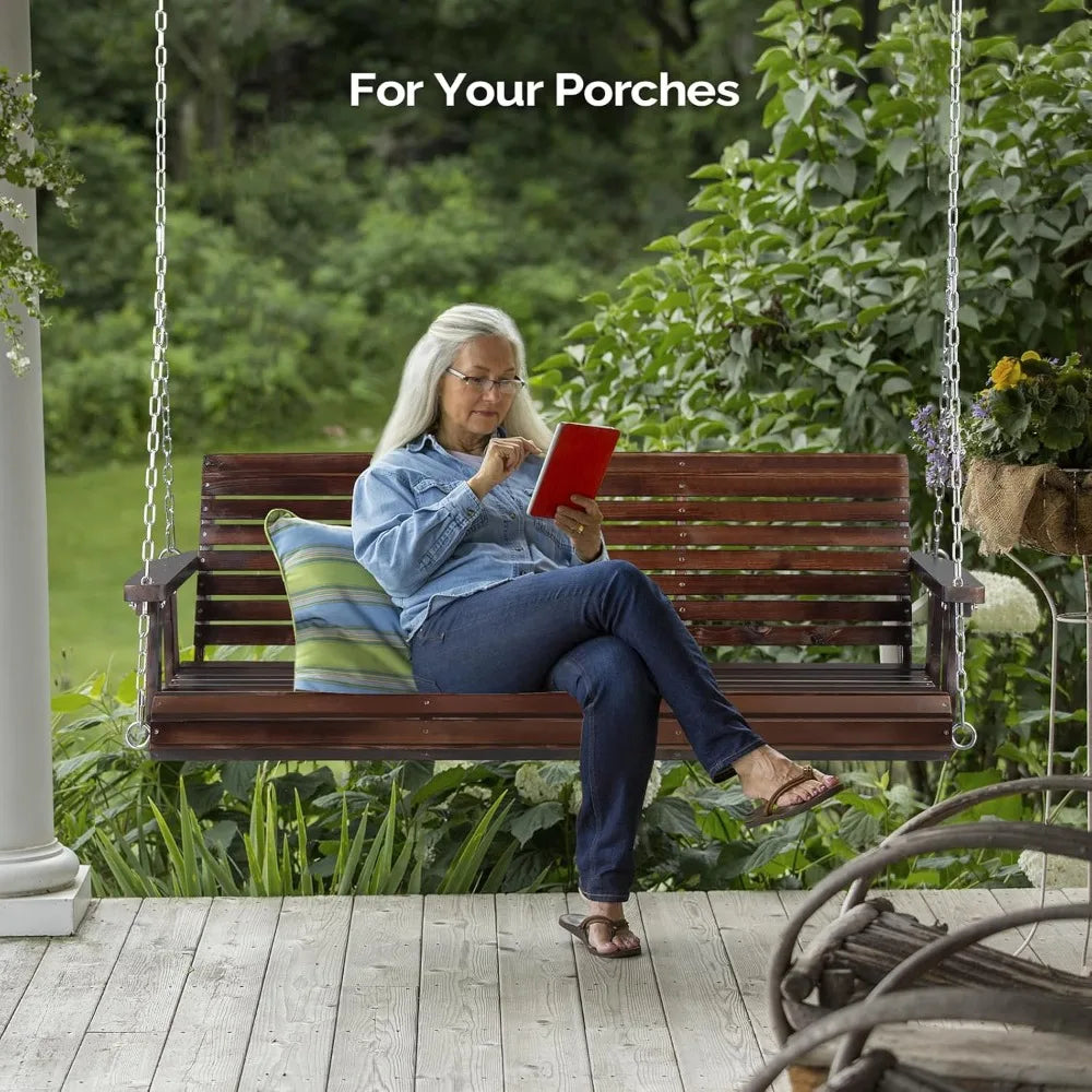 - Sturdy, family-friendly weight capacity: Enjoy peace of mind with a 880-pound maximum and seating for up to three, supported by upgraded, adjustable chains and a loop-locked wood frame connection.
