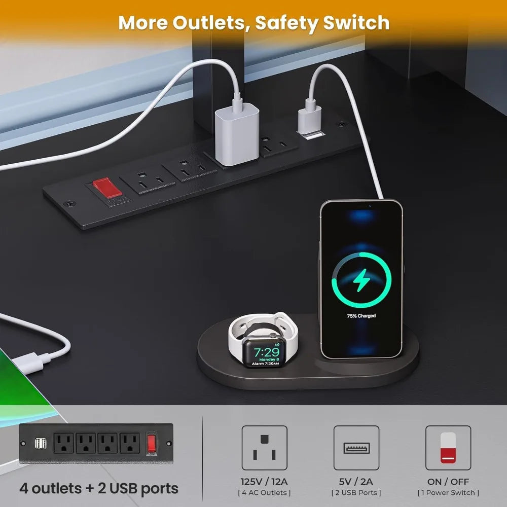 - All-in-one power hub (4 outlets, 2 USB ports) with safety switch, plus RGB mood lighting in 60,000+ colors that sync to music; includes 5 S-clips and clear assembly steps.