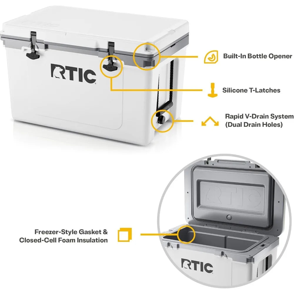 - Rugged polypropylene shell with a drain plug for easy cleanup and long-lasting ice retention on all your adventures.
