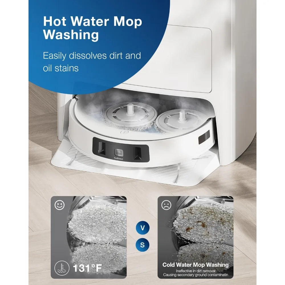 [131℉ Hot Water Mop Washing] Industry's First Robot Vacuum and Mop Cleaner with Hot Water Mop Washing. T20 washes the mop with 131℉ hot water to dissolve oil and dirt and dries it with hot air. Bringing the heat to the cleaning game, level up your cleaning experience.
