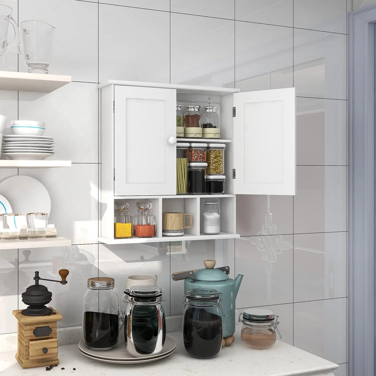 Wall Mounted Bathroom Cabinet With Adjustable Shelves Over Toilet Storage