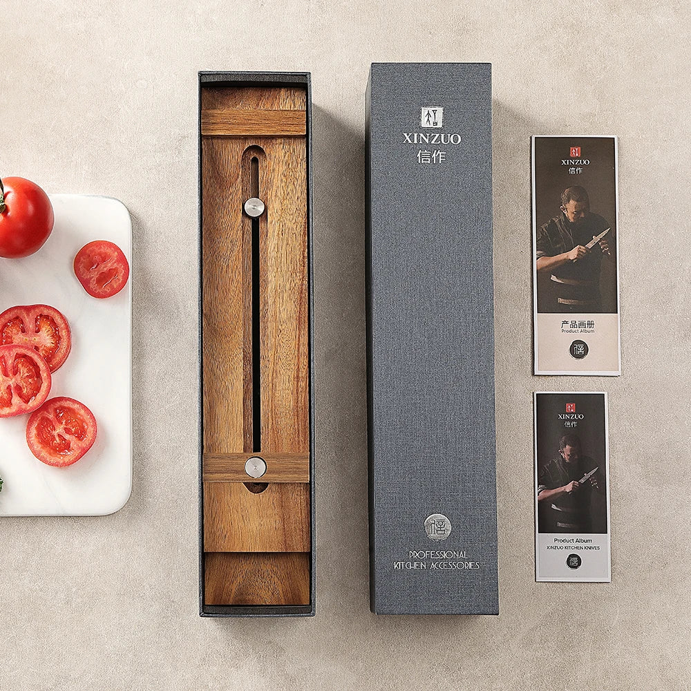 XINZUO Acacia Wood Whetstone Base Holder Adjustable Telescopic Solid Knife Sharpening Block for Kitchen Knives